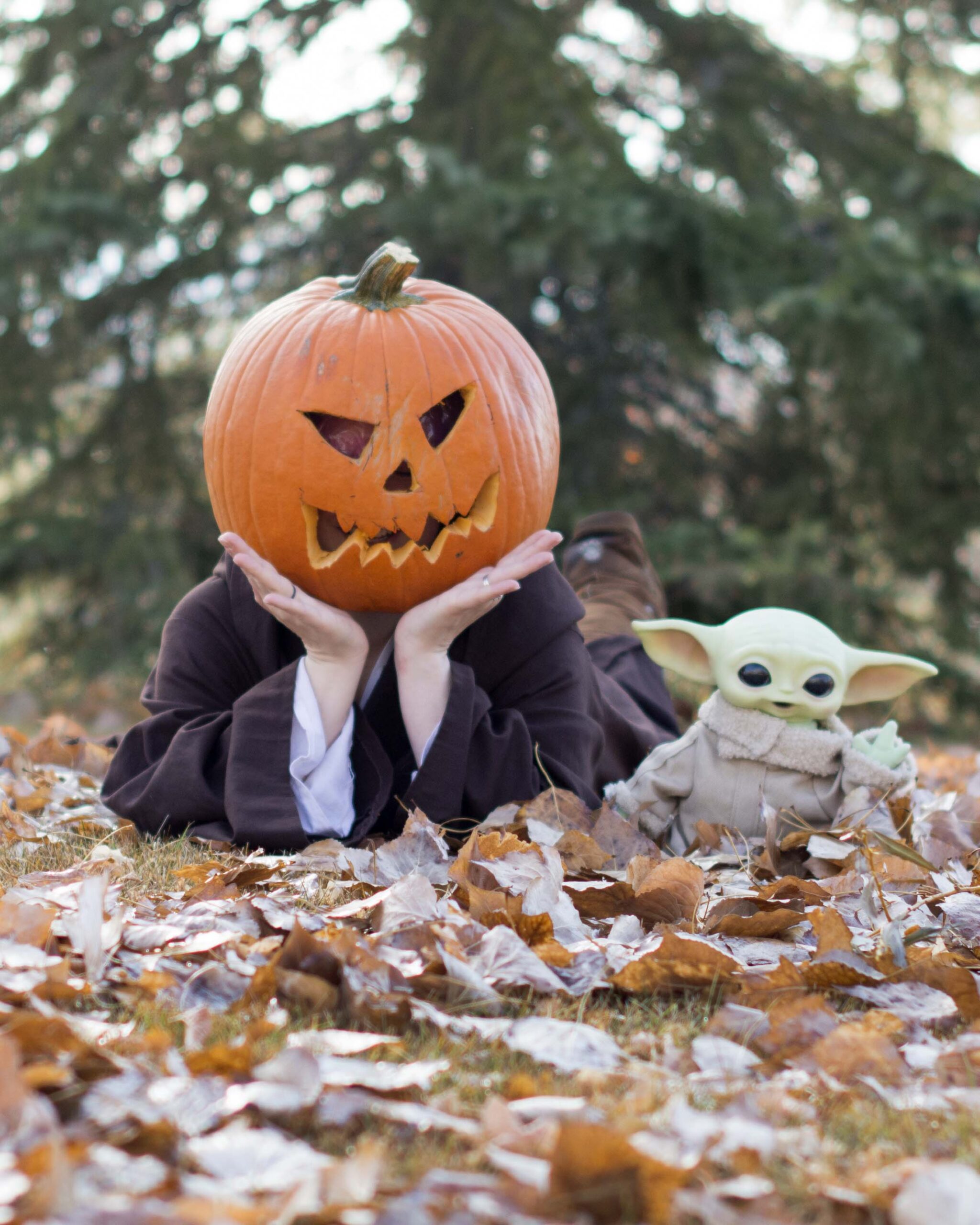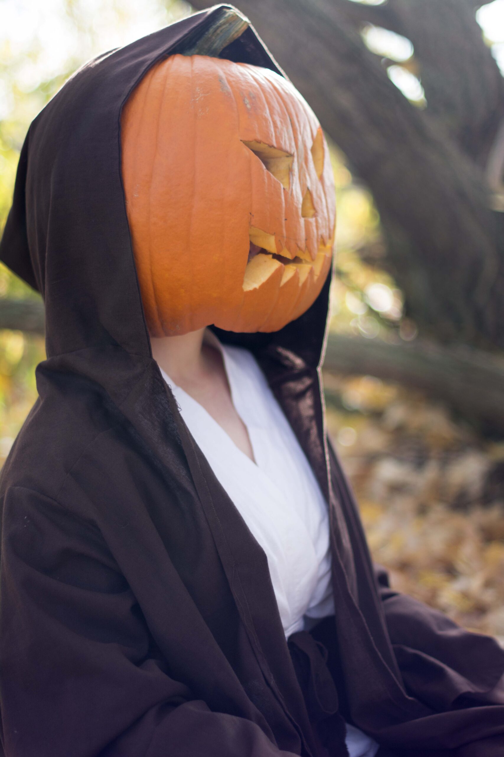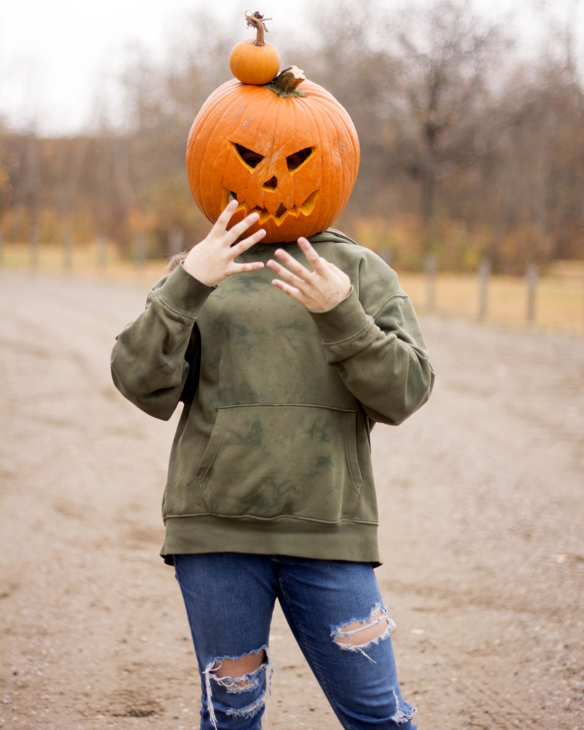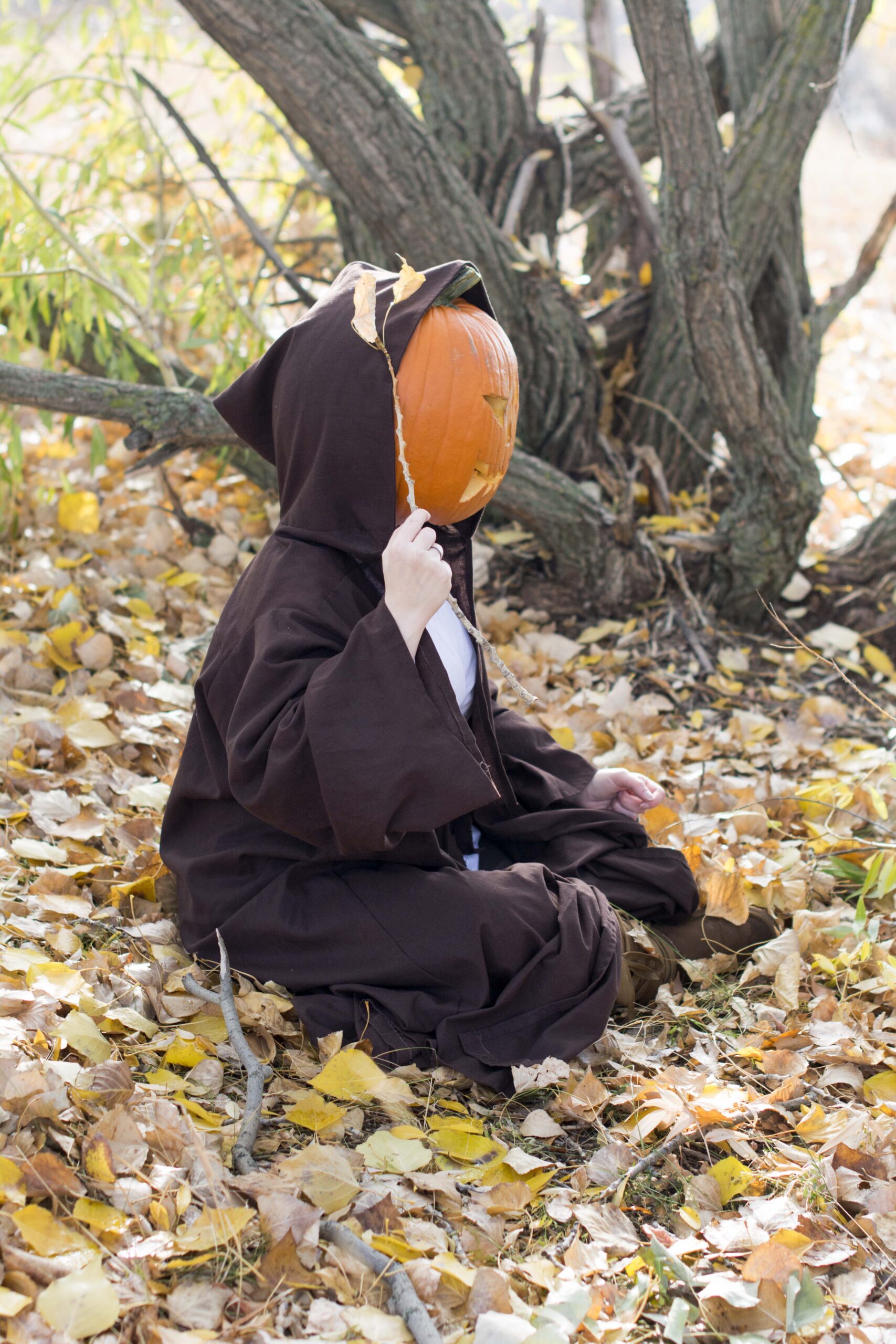 This session can only really be done in the fall when pumpkins are a plenty. Yes we use real ones.  You can purchase your own & carve it, or I buy it, but mine have a generic face.  We go out to a local park or wooded area and let the magic happen.